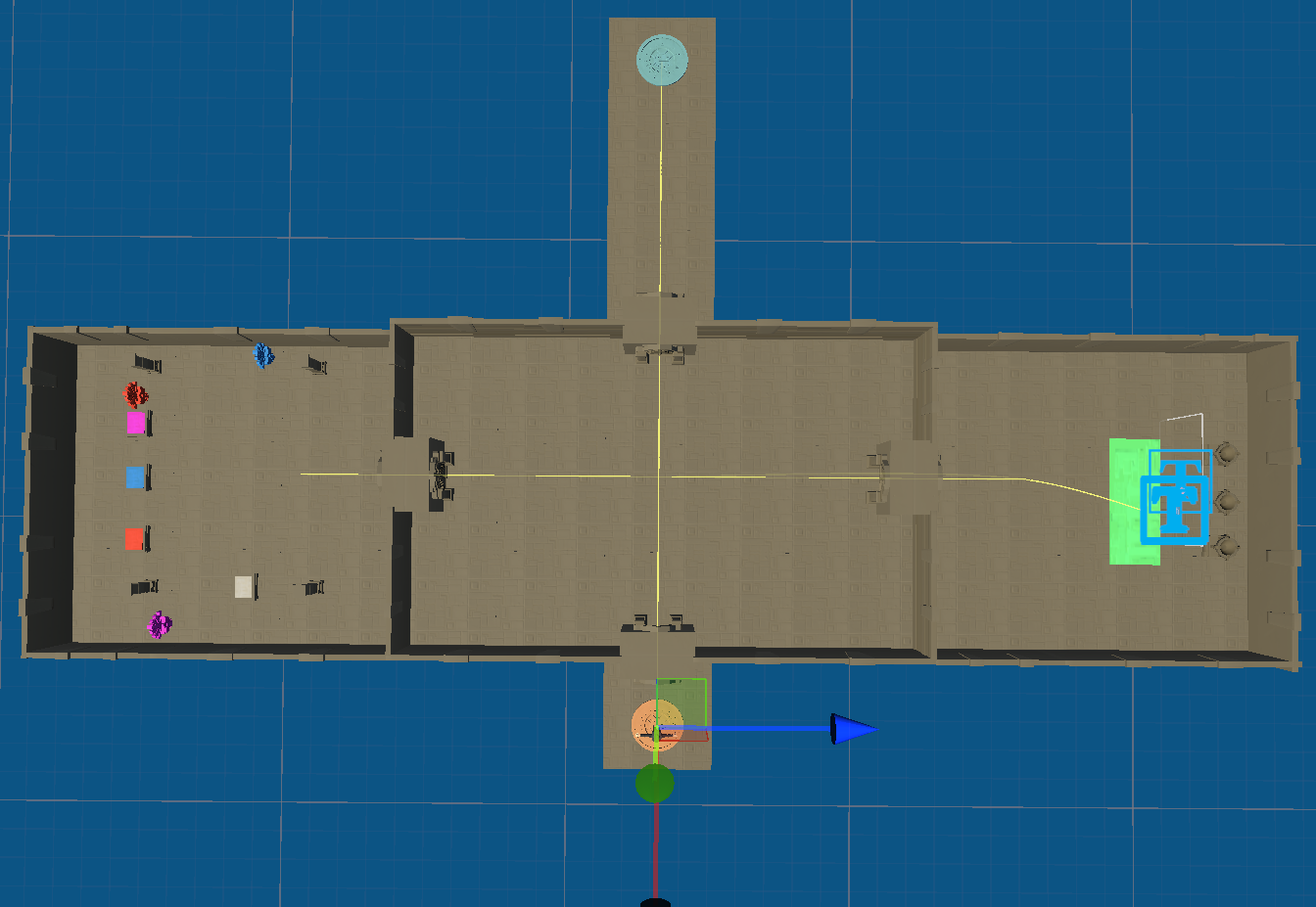 Start in the temple entrance and move through doors using the trigger.
